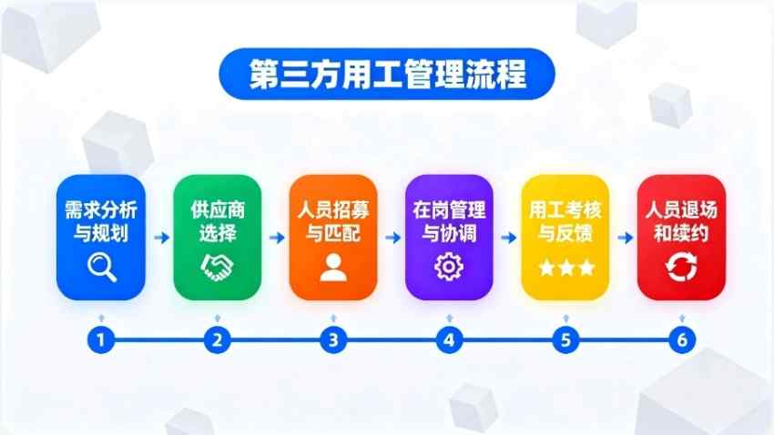 关于第三方人力管理流程,通用的流程框架主要包括以下几个环节: